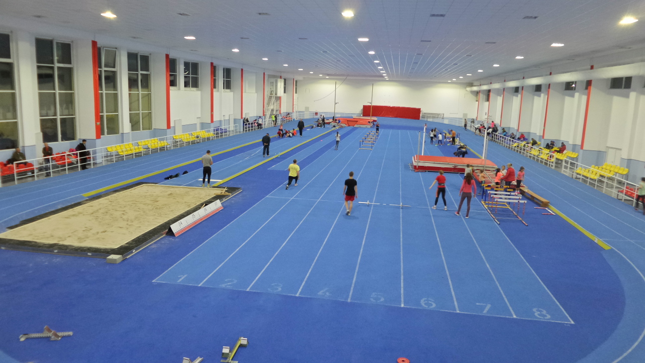 Atletska dvorana ima gotovo sve elemente kao i atletski stadion, osim što je zbog jednostavnosti konstrukcije dvorane najčešća duljina kružne staze 200 m te je borilište bitno manje nego stadion na otvorenom, i u dvorani nema vjetra.